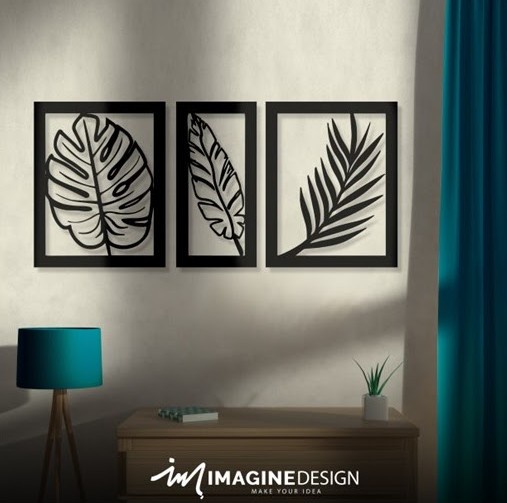 تابلوه خشب اسود (ورق شجر 3 قطع)
